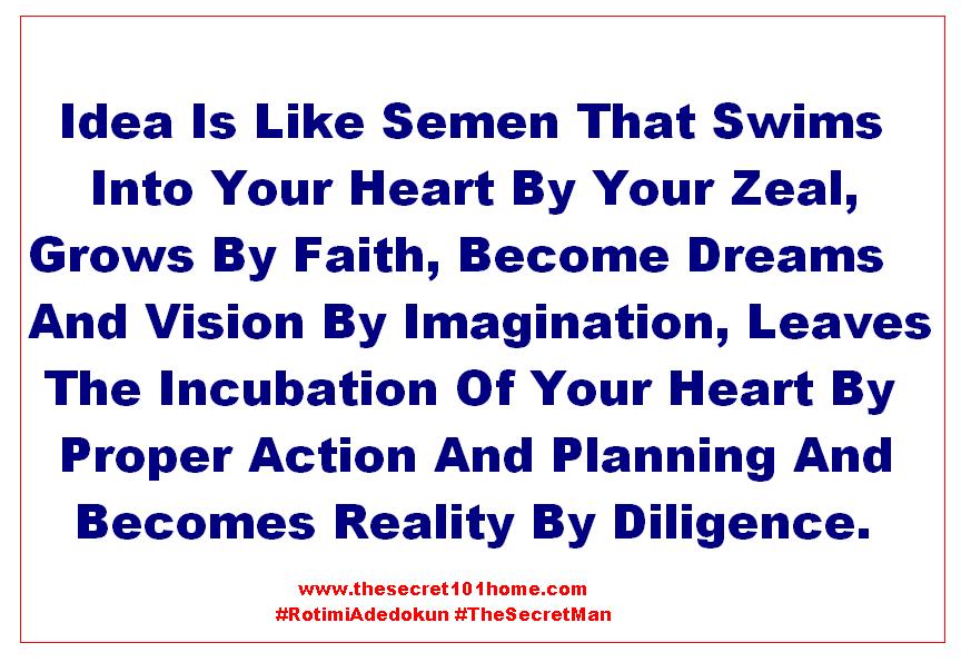 Idea Is Like Semen That Swims Into Your Heart By Your Zeal, Grows By Faith, Become Dreams And Vision By Imagination, Leaves The Incubation Of Your Heart By Proper Action And Planning And Becomes Reality By Diligence.