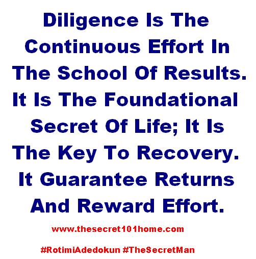 Diligence Is The Continuous Effort In The School Of Results. It Is The Foundational Secret Of Life; It Is The Key To Recovery. It Guarantee Returns And Reward Effort.