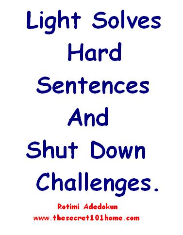 As light does not give notice to take over from darkness, so darkness does not announce its departure when light surface. Light is the most powerful force in the entire universe. Light provokes peace. Light generates joy. Light builds confidence. Light creates life. Light initiates greatness and setup success. Everything is light and light is everything. Light helps to locate answers to questions, solutions to problems. Light solves hard sentences and shut down challenges. Light therefore is the God’s recommended solution for life.