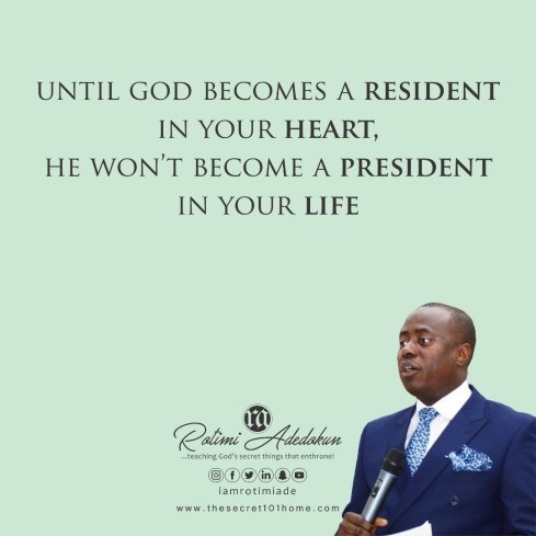 Life is first in first out; accountants called it FIFO. I called it the law of profiting. What you don’t allow can never allow you; what you don’t invest in will never profit. In the same vein, the best of God in a man’s is a product of the best of man’s investment in the things of God. The secret is this; life is predictable; what you allow will determine what will allow you, and what you permit will permit you. Those who give their best to God will get the best of God. Ask Abraham, Isaac, Jacob, and Joseph. The reason is simple; until God becomes a resident in your heart, He won’t become a president of in your life.